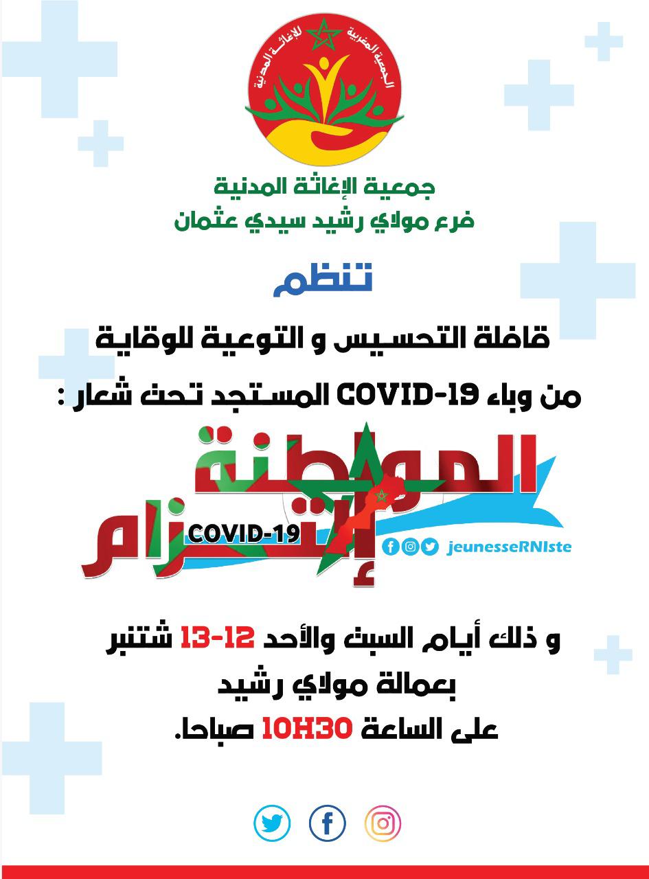 حملة تحسيسية تحت شعار “المواطنة التزام واجب وطني ” ، نظم المجتمع المدنى وفعاليات الجمعوية وجمعيات التجار السوق الجملة بمولاي رشيد حملة تحسيسية مشتركة بتنسيق مع السلطات الامنية والمحلية واعوان السلطة تحت شعار : “المواطنة التزام واجب وطني”، وشملت هذه الحملة التحسيسية كل من احياء مولاي رشيد وحي السلامة والسوق الخضر والفواكه بتوزيع الكممات والمعقمات الكحولية حيت لقت هده الحملة استحسان الساكنة والتجار . وحسب المشرفين، وجاءت هذه المبادرة تنفيذا لمقتضيات الخطاب الملكي السامي بمناسبة ذكرى السابعة والستين لثورة الملك والشعب، كما تندرج هذه الحملة المشتركة أيضا في إطار العناية الملكية التي يوليها جلالة الملك محمد السادس من أجل ضمان الحفاظ على صحة المواطنين في ظل هده الأزمة التي يتطلب الحزم فيها والتوعية لمواجهة انتشار فيروس كورونا المستجد. وفي هذا السياق، قدم الاطر والعديد من المتطوعين المشرفين على الحملة مجموعة من النصائح الوقائية، كما شرح مجموعة من الخطوات التي يجب الالتزام بها في هده الظرفية ، وذلك في ظل الوضعية الوبائية الراهنة التي تجتاح مختلف مدن المعمور، التي أقل ما يقال عنها أنها مقلقة وغير مطمئنة، وهو ما لخصه خطاب جلالة الملك محمد السادس، وتنفيذا لمقتضيات الخطاب الملكي السامي بمناسبة ذكرى ثورة الملك والشعب. حيت أصبح من الضروري تكاتف الجهود لمواجهة هده الأزمة وفق البروتوكول الوقائي والالتزام بكل التدابير الاحترازية، التي أقرتها السلطات المختصة للحدمن تفشي جائحة كورونا كوفيد 19. للحفاظ على الوطن والمواطن بكل مسؤلية