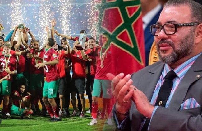 وكلف الملك محمد السادس المدرب حسين عموتة بإبلاغ تهانيه إلى كافة لاعبي وأطقم المنتخب من تقنيين وإداريين عقب تحقيق هذا الإنجاز.